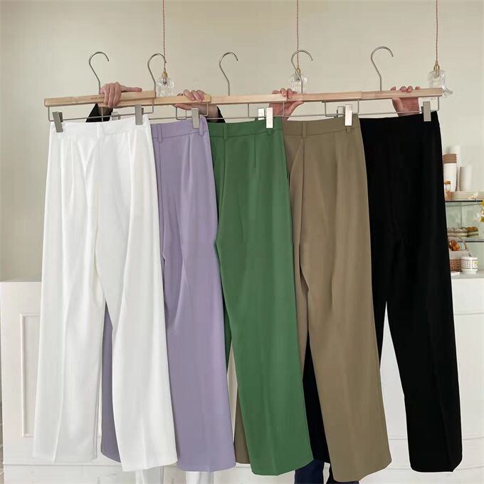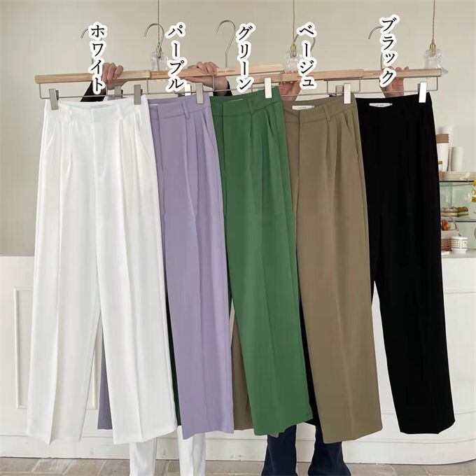 ロングパンツ レディース スーツパンツ フリル ゆったり ハイウエスト カジュアルパンツ ボトムス オフィス きれいめ 無地 シンプル 着痩せ おしゃれ 韓国ファッション 春 夏 秋 送料無料