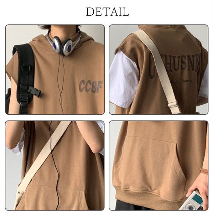 タンクトップ メンズ tシャツ ノースリーブ フード付き ヒップホップ プリント 大きいサイズ 速乾 おしゃれ 運動 スポーツ トレーニング コーデ レイヤード カジュアル ストリート 韓国ファッション お洒落 通学 通勤 夏 送料無料
