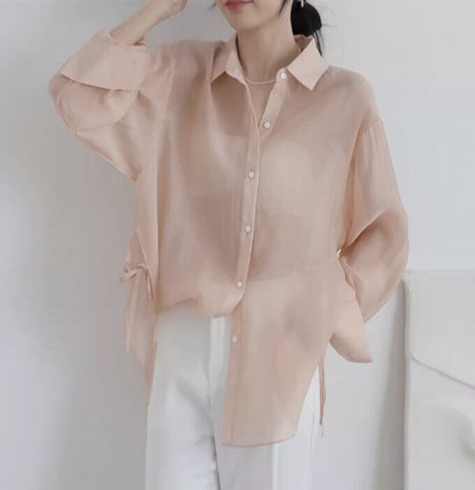シャツ 長袖 UVカット シャツ レディース 日焼け止め服 紫外線対策 ラッシュガード シャツ 長袖 透け感 カーディガン 前開き 羽織り 薄手 着痩せ ゆったり ライトアウター 夏 コーデ 送料無料
