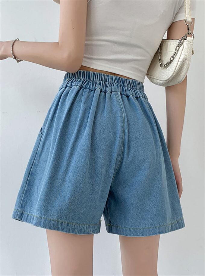 ハーフパンツ レディース ショートパンツ デニムパンツ プリーツパンツ フレア ハイウエスト ウエストゴム おしゃれ 膝上 無地 ボトムス 春 夏 秋 ショート丈 aライン ガウチョパンツ ワイドパンツ 美脚 低身長 可愛い ライトブルー ダークブルー M~5XL 夏物 送料無料