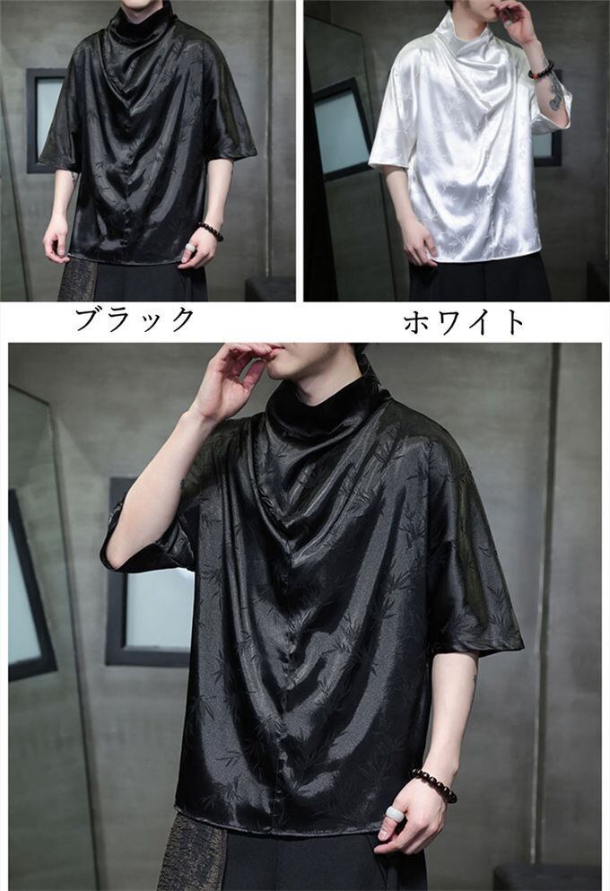 半袖tシャツ メンズ ハイネック サテン調 プリント インナー シンプル トップス ゆったり ビックシルエット レイヤード 重ね着 おしゃれ かっこいい カジュアル 20代 30代 40代 50代 60代 ヒップホップ 春 夏 秋 韓国ファッション 送料無料