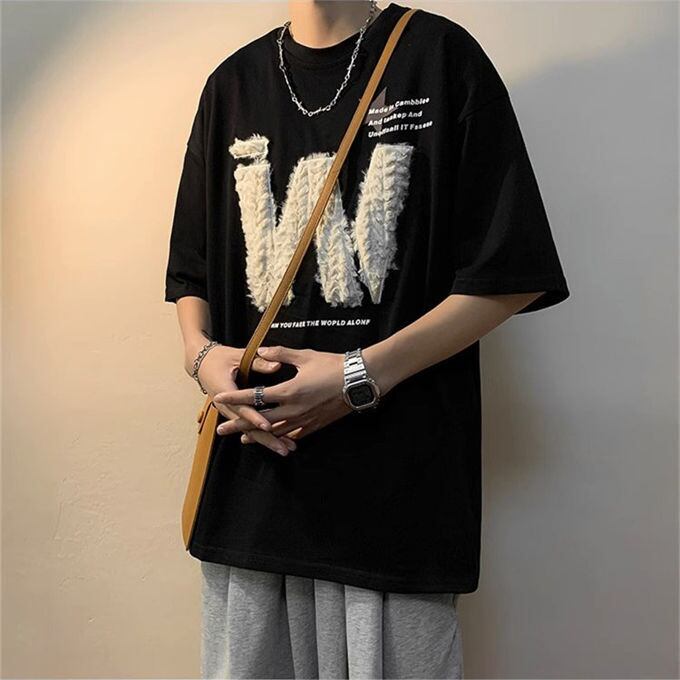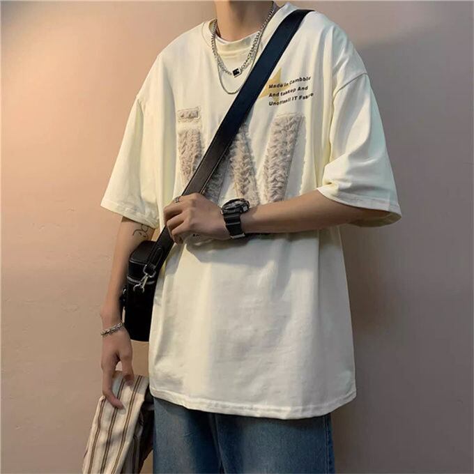 半袖tシャツ メンズ プリント 刺繍 ペアルック ゆったり スポーツ シンプル 紳士 レイヤード 重ね着 トップス 大きいサイズ ビックシルエット オフィス カジュアル インナー ヒップホップ ストリート系 夏物 韓国ファッション 杏色 黒 M~2XL 送料無料
