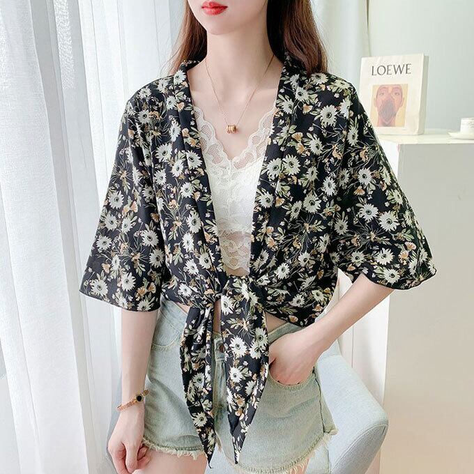 UVカット カーディガン レディース 花柄 プリント 薄手 UVカーデ ショートカーディガン 大きいサイズ レディース 羽織り UV対策 紫外線冷房トップス 春 夏 透け感 体型カバー 五分袖 ボタンなし 送料無料