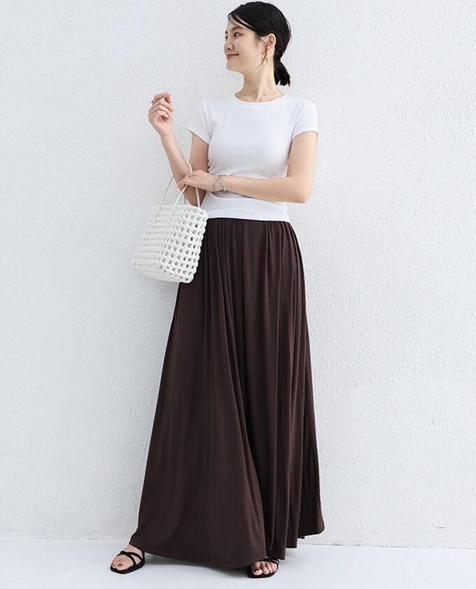 こなれた大人女性の印象のマキシ丈フレアスカート