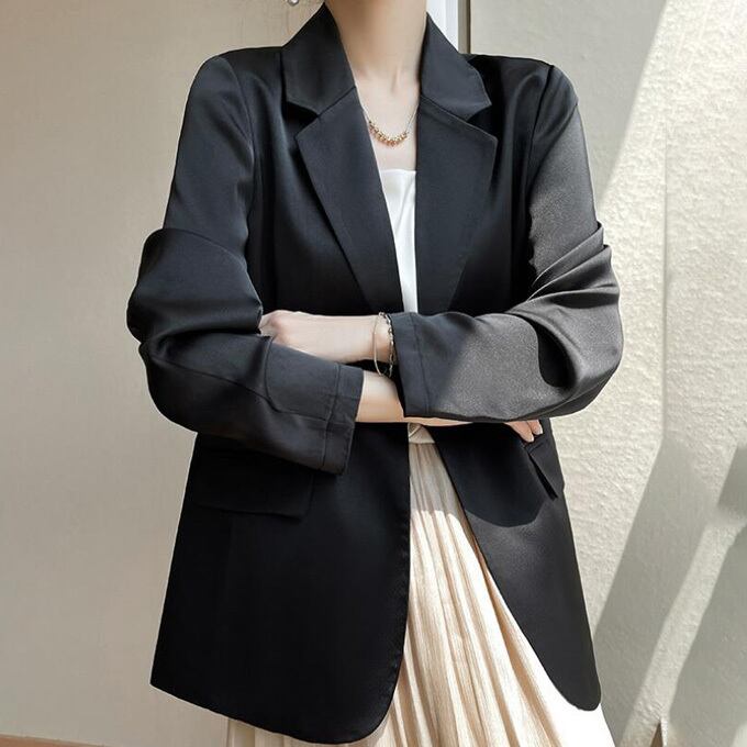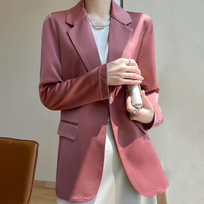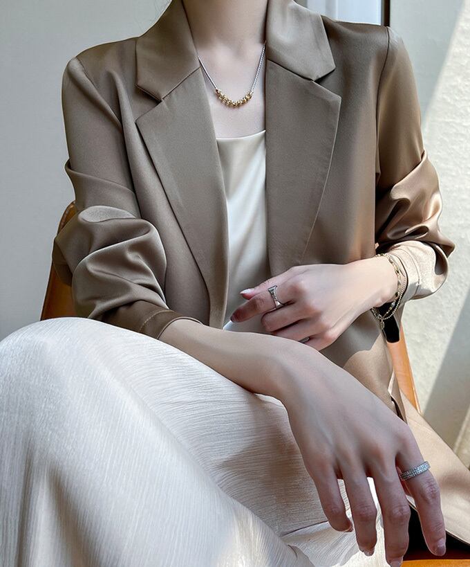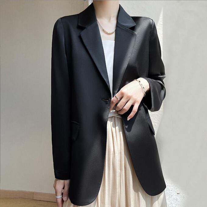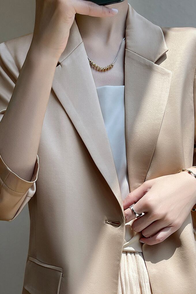 テーラードジャケット シルクジャケット レディース 薄手 スーツジャケット ワンボタン 滑らか 光沢 カジュアルスーツ シルクサテン 絹 フォーマル 春 夏 アウター ブレザー サテンスーツ スタイリッシュ テーラード ジャケット ミドル丈 上品 ママ 女性 母親 卒園式 卒業式 入学式 結婚式 送料無料