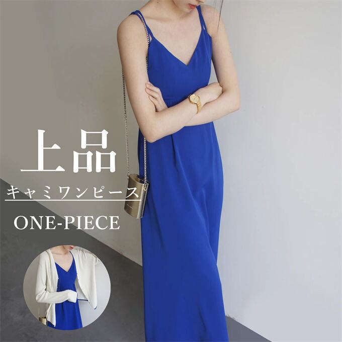 キャミソールワンピース レディース ノースリーブワンピース 無地 ロング丈 シンプル 体型カバー ゆったり 着痩せ 高品質 レイヤード 重ね着 シンプル フェミニン 韓国ファッション おしゃれ キレイめ 上品 大人 通勤 サファイアブルー M~3XL 春 夏 秋 送料無料