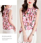 ブラウス レディース シフォン トップス ノースリーブ タンクトップ ノースリーブブラウス フラワー リゾート 花柄 大人 ガーリー カジュアル 可愛い フェミニン きれいめ 上品 おしゃれ オフィス スタンドカラー 夏 送料無料