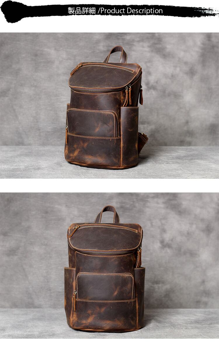 ●このバッグは場所によって、リュック、手提げバッグ、ボストン用でもOK、3WAYのバッグです。サイズが大きめであり、15.6インチPC収納でき、A4、大量荷物入れでも大丈夫です。高品質な本牛革なので、何十年でも丈夫!弊社のこだわりの人気商品であるが、サイズが大きめでもあり、しなやかな本革、広いマチにあわせ、結構物詰められるように、長い期間の旅行にも適用!