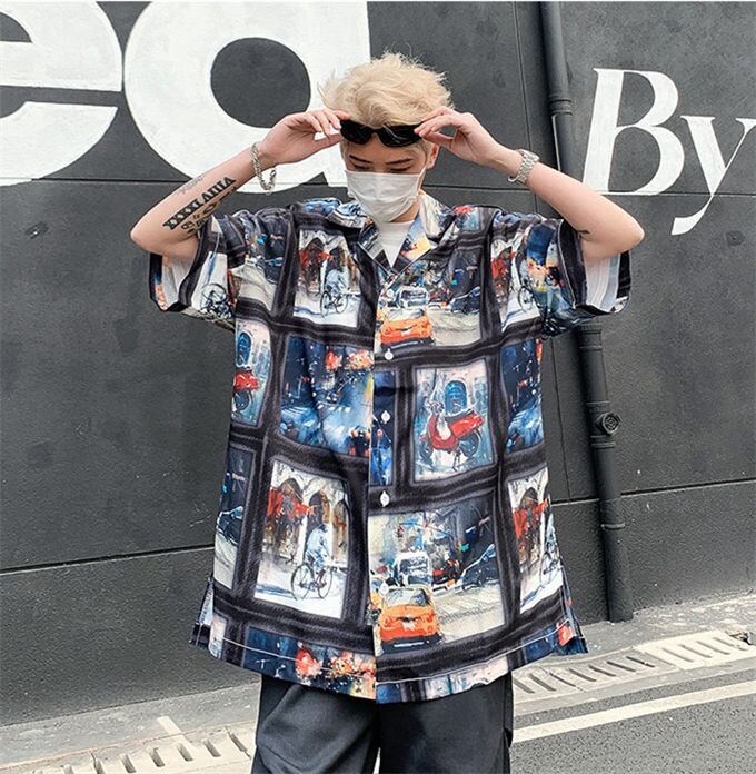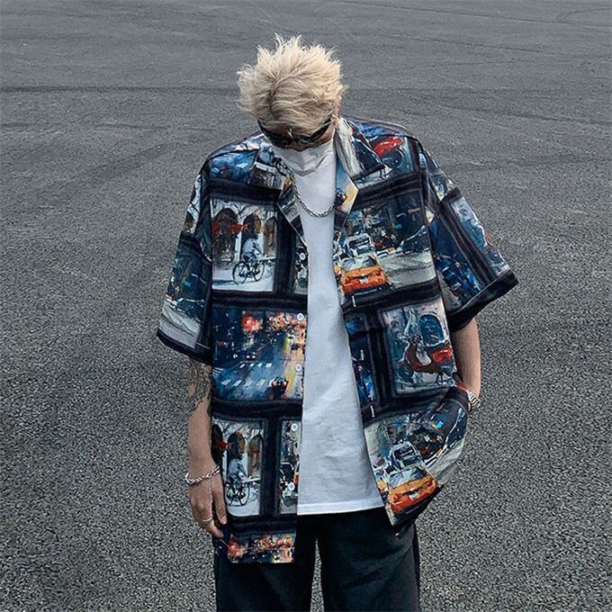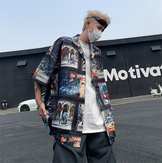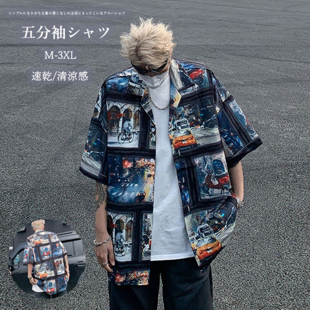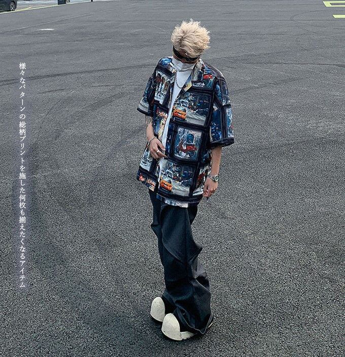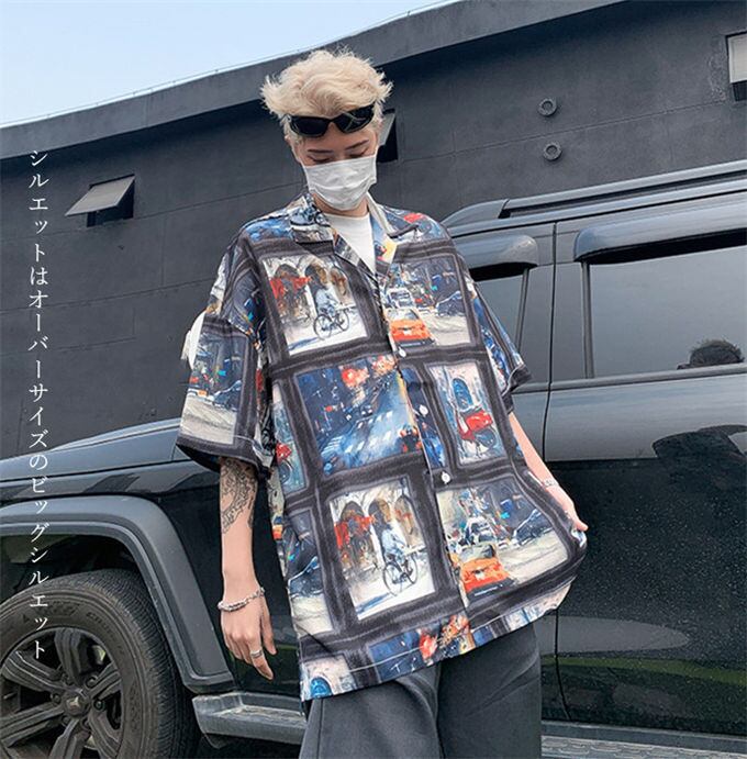 シャツ メンズ 5分袖 プリント ビッグシルエット オーバーサイズ オープンカラーシャツ 開襟シャツ ルーズシャツ ビッグシャツ アロハシャツ 速乾 清涼感 カジュアル キレイめ ストリート 夏 服 お洒落 送料無料