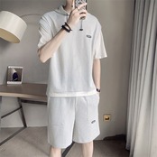 セットアップ 上下セット メンズ 半袖tシャツ ハーフパンツ 涼しい 夏物セットアップ レイヤード風 薄手 スポーツ スウェット トレーニング ゆったり 大きいサイズ かっこいい 韓国 ファッション ブラック 黒 グレー M~5XL 夏服 送料無料