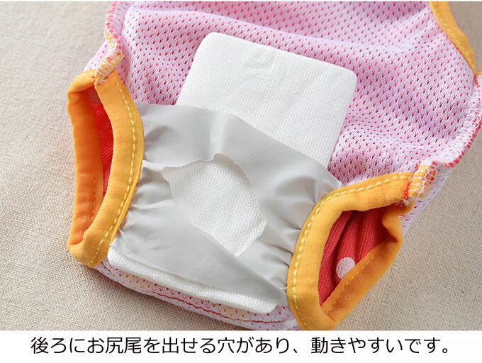 ◆大きなフリルとドットがかわいい、サロペットタイプのサニタリーパンツ(マナーパンツ)です♪