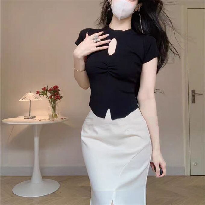 ニットトップス 半袖Tシャツ レディース タイトtシャツ スリム 短め トップス ニットソー サマーニット インナー おしゃれ 個性的 無地 伸縮性 お出かけ ゆったり 着痩せ お洒落 かわいい セクシー 通勤 オフィス オシャレ フェミニン 夏 送料無料