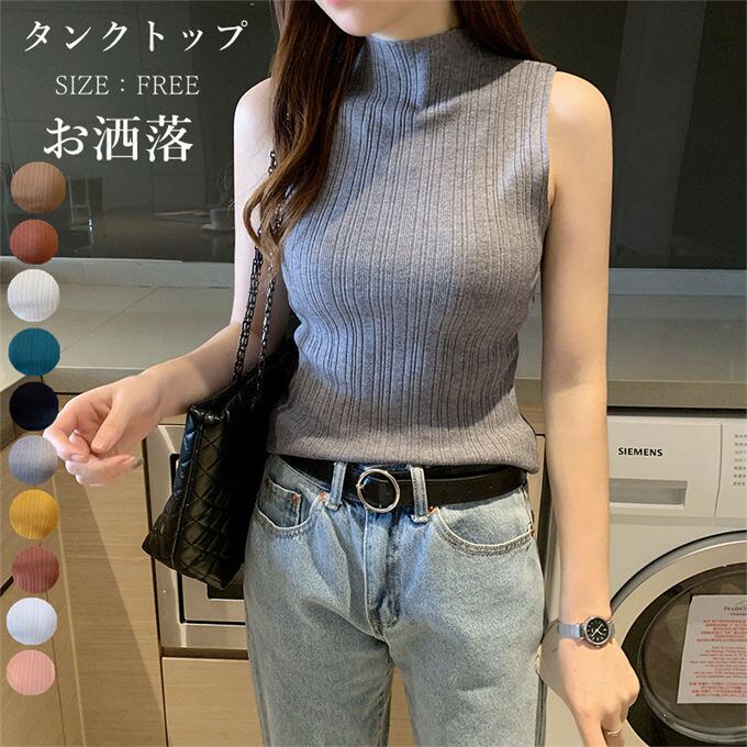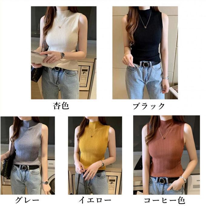 ノースリーブtシャツ レディース タンクトップ ニットソー サマーニット トップス タイトtシャツ インナー シンプル タートルネック カジュアル 大きいサイズ ビッグシルエット ゆったり 着痩せ お洒落 かわいい 通勤 オフィス フォーマル 春 夏 秋 送料無料