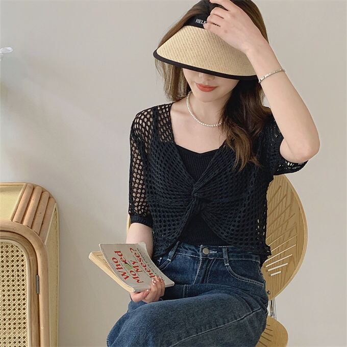 UVカット カーディガン レディース 透かし編み サマーニット プルオーバー シアー 半袖 透け感 薄手 ショート丈 冷房対策 上品 紫外線対策 日焼け防止 オフィス 通勤 OL 春 夏 秋 日焼け対策もお洒落も叶えるサマーカーディガン 送料無料