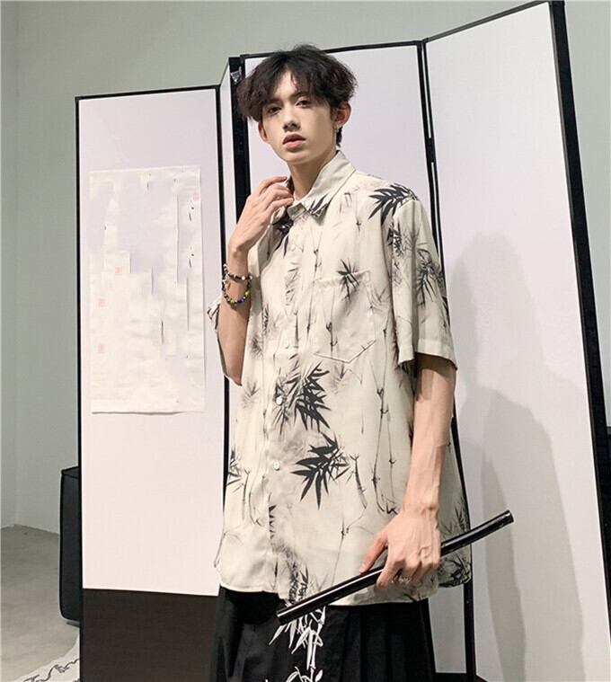 シャツ メンズ 5分袖 プリント ビッグシルエット オーバーサイズ 開襟シャツ ビッグシャツ アロハシャツ 清涼感 カジュアルシャツ 羽織 おしゃれ キレイめ ストリート 夏服 お洒落 韓国ファッション 送料無料