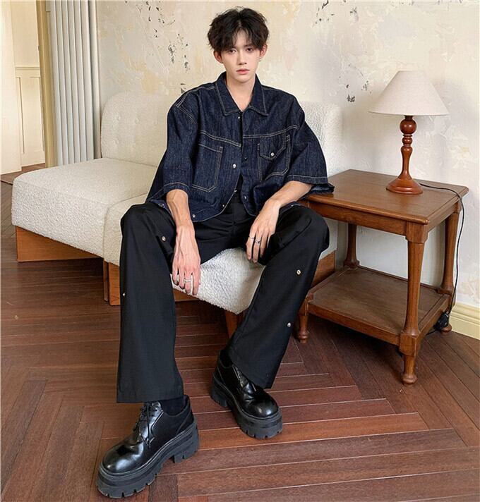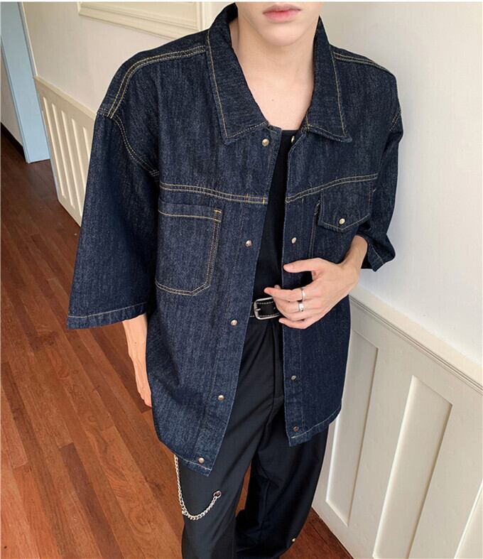 ワークシャツ デニムシャツ メンズ 半袖 五分袖 かっこいいシャツ 羽織 おしゃれ カジュアル ストリート系 ゆったり ビッグシルエット オーバーサイズ 大きめ トップス レトロ 通学 韓国ファッション レトロ 夏 送料無料