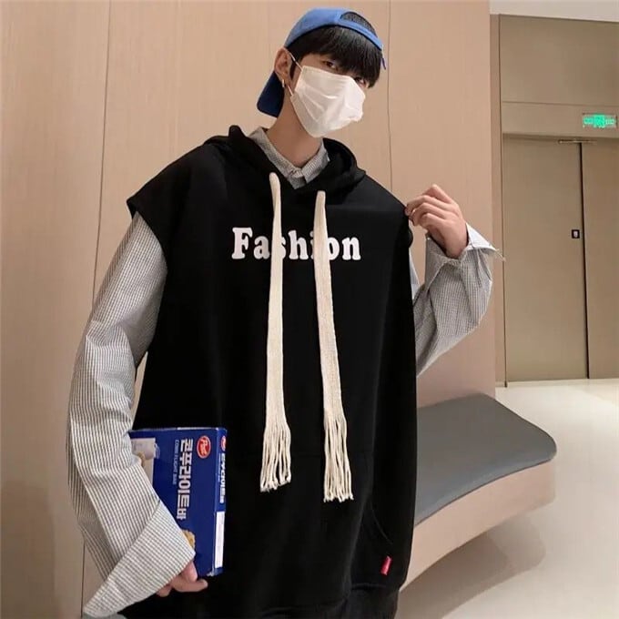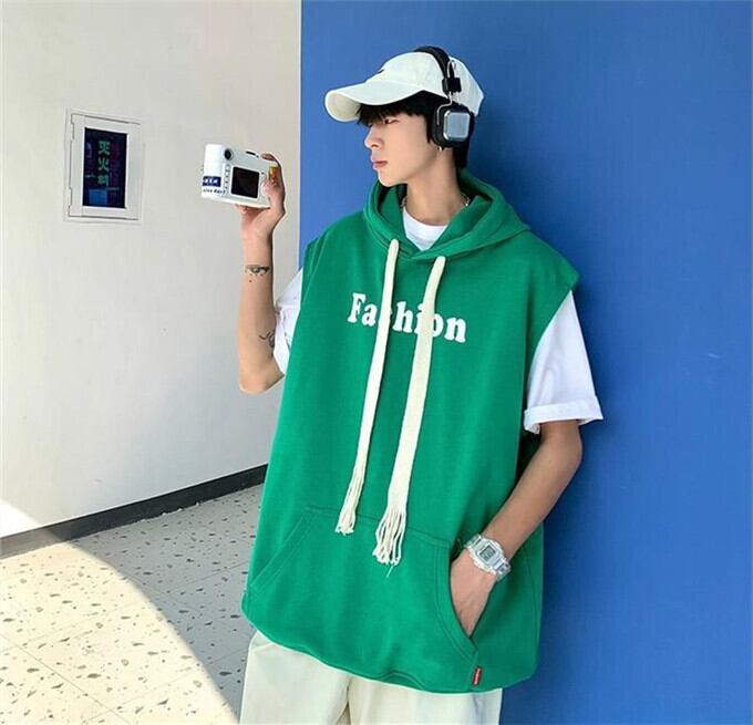 ベスト メンズ ノースリーブ パーカー ジレ フード付き チョッキ プルオーバー プリント スウェット サマーベスト ゆったり 大きいサイズ レイヤード風 重ね着 ビッグシルエット ファッション カジュアル ストレッチ 春 夏 秋 送料無料