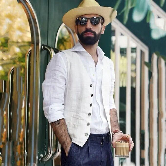 リネンベスト メンズ ノースリーブ Vネック ジャケット タイト ジレベスト レイヤード風 重ね着 大きいサイズ ゆったり カジュアル サマージャケット 薄手 ベスト 仕事着 オフィス ビジネス 春 夏 秋 レトロ 送料無料