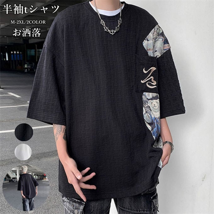 Tシャツ メンズ 半袖tシャツ メンズファッション 夏 tシャツ クルーネック 刺繍 トップス おしゃれ かっこいい プリントTシャツ ストリート系 カジュアル ヒップホップ ビッグシルエット オーバーサイズ 送料無料