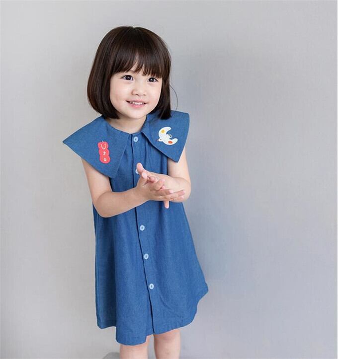 ワンピース キッズ デニム 子ども 袖なし ひざ丈 丸襟 ベビーカラー 刺繡 キャラクター シングル 夏 子供服 子供ドレス dress 女児 韓国子供服 きれい 可愛い おしゃれ 通学着 夏用 夏物 夏服 子どもワンピース キッズ服 ノースリーブ 女の子 膝丈 子ども服 3-8歳 95cm 100cm 105cm 115cm 120cm 130cm 送料無料