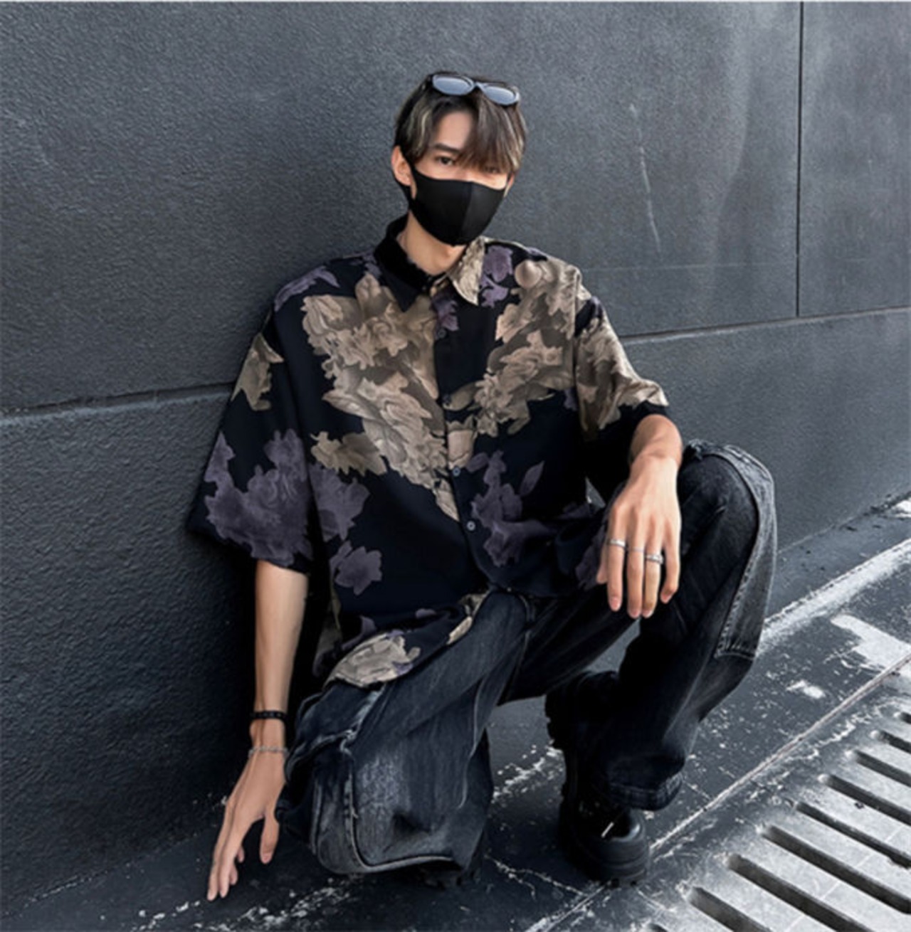 シャツ メンズ 5分袖 半袖 プリント ビッグシルエット オーバーサイズ 開襟シャツ ビッグシャツ アロハシャツ 清涼感 カジュアルシャツ 羽織 ゆったり おしゃれ キレイめ ストリート 夏服 お洒落 韓国ファッション メンズファッション 送料無料