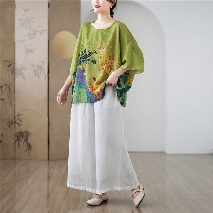 ブラウス レディース トップス 花柄ブラウス 半袖 プリント ボリューム袖 プルオーバー クルーネック 体型カバー ビッグシルエット エスニック ゆったり 大きいサイズ カジュアル おしゃれ レトロ 上品 服 夏 花柄ブラウス レディース ブラウス tシャツ 花柄 半袖 五分袖 体型カバー ビッグシルエットレトロ ゆったり トップス 送料無料