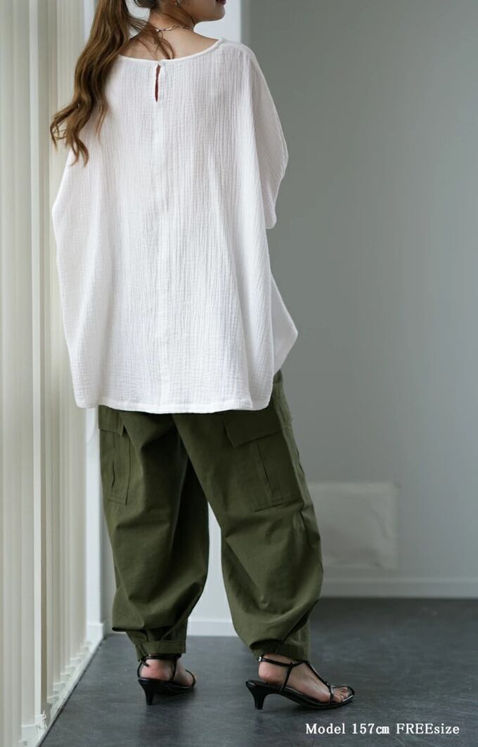 ボリューム感のあるスリーブが腕周りを細く見せてくれます。