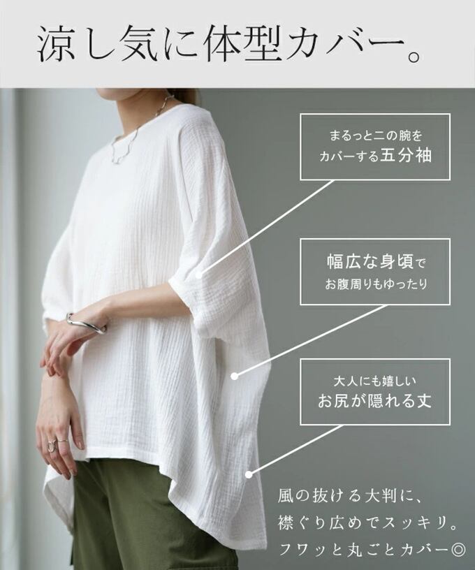 ほのかにハリと落ち感のある素材感で大人な抜け感をプラスします。