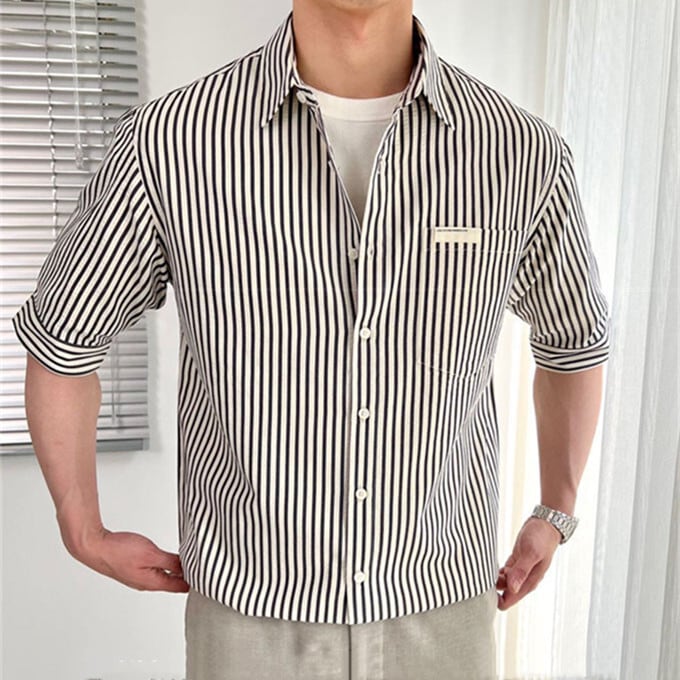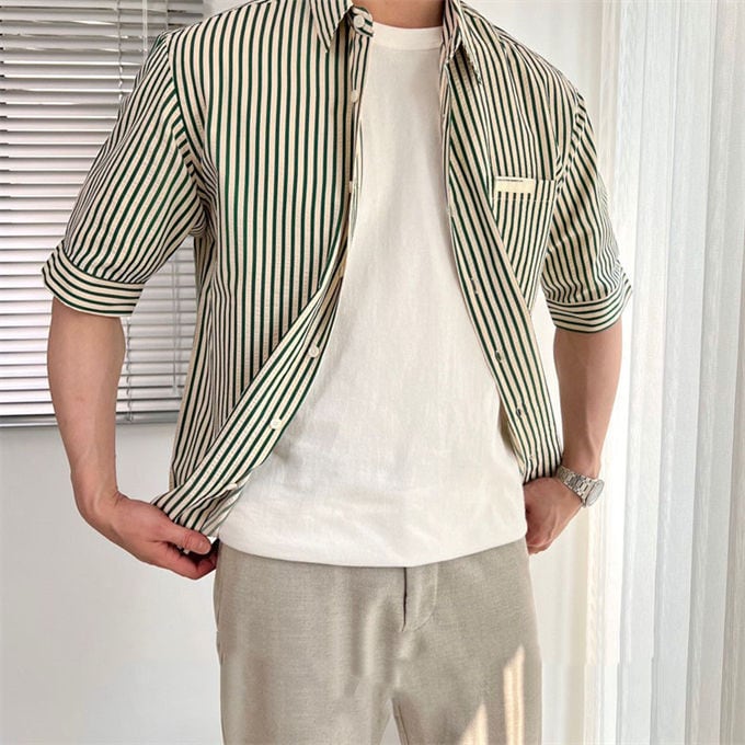 ストライプシャツ 半袖シャツ メンズ 半袖 五分袖 かっこいいシャツ 羽織 シングル おしゃれ カジュアル ストリート系 ゆったり ビッグシルエット オーバーサイズ 大きめ トップス オフィス ビジネス 通学 韓国ファッション 夏 ストライプシャツ 半袖シャツ メンズ トップス トップス ビジネスシャツ 仕事 ボタンダウン 送料無料