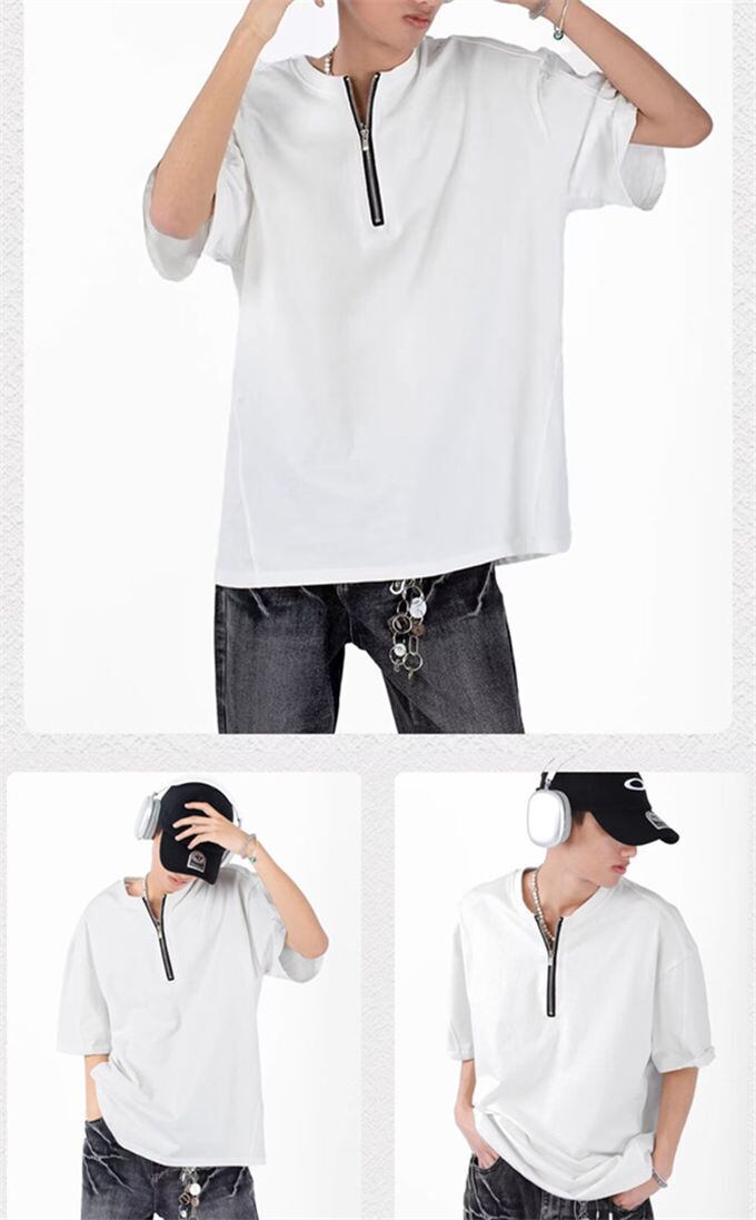 Tシャツ メンズ 半袖tシャツ メンズファッション 夏 tシャツ ファスナー 無地 シンプル トップス おしゃれ かっこいい ストリート系 カジュアル ビッグシルエット オーバーサイズ 通勤 通学 スポーツ 韓国ファッション 夏服 半袖tシャツ メンズ 夏 tシャツ オーバーサイズtシャツ ゆったり ビッグtシャツ トップス 白 黒 グレー M~3XL 送料無料