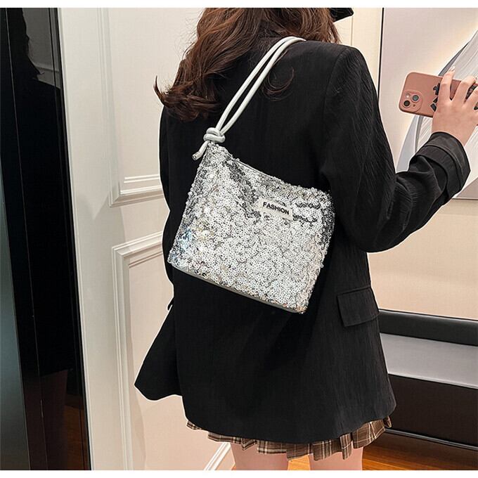 ショルダーバッグ キラキラ スパンコール バッグ レディース トート PUレザー ハンドバッグ ポシェット 2WAY おしゃれ 斜め掛け 斜めがけバッグ パーティーバッグ カジュアル シンプル 軽量 二次会 披露宴 発表会 フォーマル