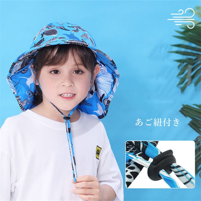 帽子 子ども UVカット 男の子 女の子 夏 つば広 ハット たれ付き あご紐付き 紫外線対策 日焼け止め 日除け ぼうし プリント 海洋 動物 後ろゴム 通気性 ビーチ 海 プール 旅行 おしゃれ 幼児 夏用 夏物 新作 日よけ帽子 キッズ ツバ広 アウトドア 日よけタレ 首筋ガード UV対策 男女兼用 ユニセックス サマー 送料無料