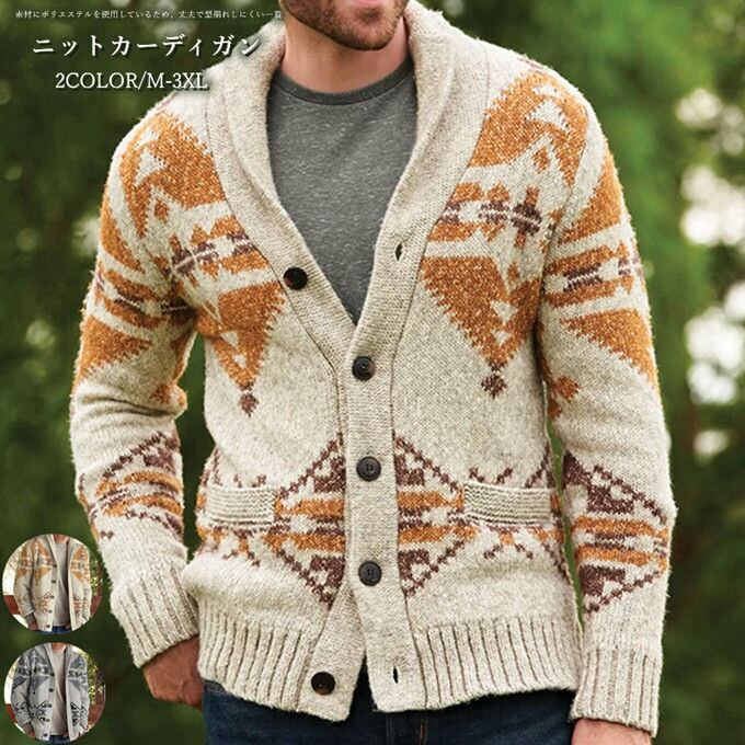 カーディガン メンズ ニットカーディガン セーター ライトアウター ショールカラー カウチンニット風 総柄 厚手 暖かい 保温性 しっかり生地 伸縮性 大きいサイズ トップス エスニック カジュアル ユニセックス カーデ 男性 服 秋 冬 秋冬 おしゃれ ビンテージ系 ファッション【送料無料】
