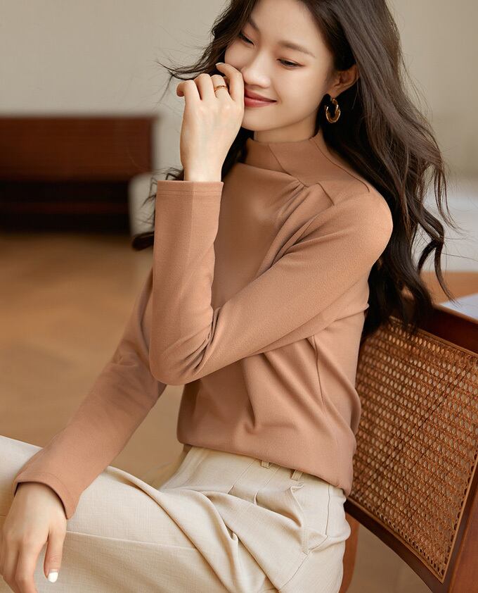 カットソー 秋冬 微起毛 プチハイネック レディース トップス 長袖 ハイネック ギャザー インナー 春 秋 冬 ストレッチ 伸びる 柔らか コーデ レイヤード きれいめ おしゃれ 無地 シンプル あったか 冬 インナー 送料無料