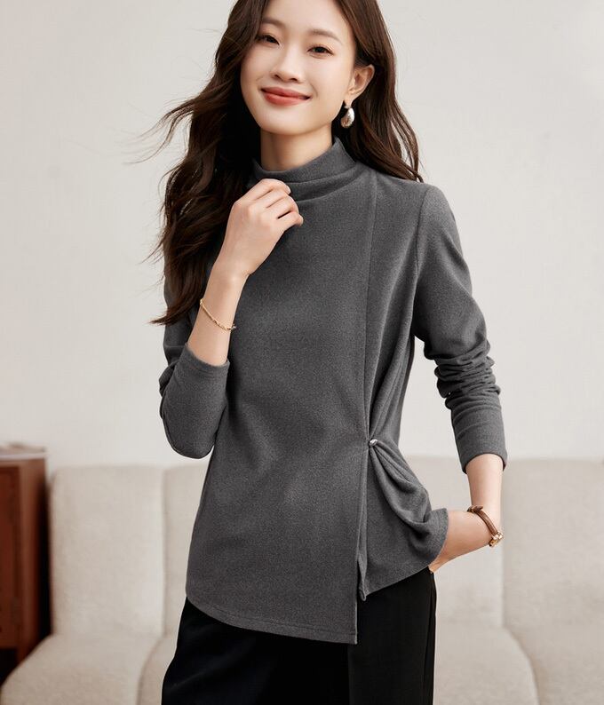 カットソー Tシャツ 長袖 秋冬 微起毛 プチハイネック タートルネック レディース トップス ボダン付き インナー 春 秋 冬 ストレッチ 伸びる 柔らか コーデ きれいめ おしゃれ 無地 シンプル あったか 冬 インナー 送料無料