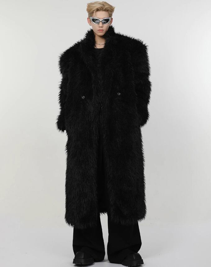 ファーコート メンズ アウター 毛皮コート 厚手 フェイクファー フォックス ロング丈 無地 アウターコート 秋冬 暖かい 防寒服 カジュアル 贅沢 上着 人気 大きいサイズ アウター 送料無料