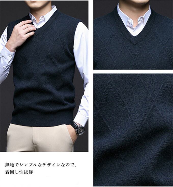 ■商品紹介:男性用の無地V首(Vネック)ニットベストです。