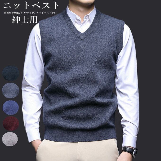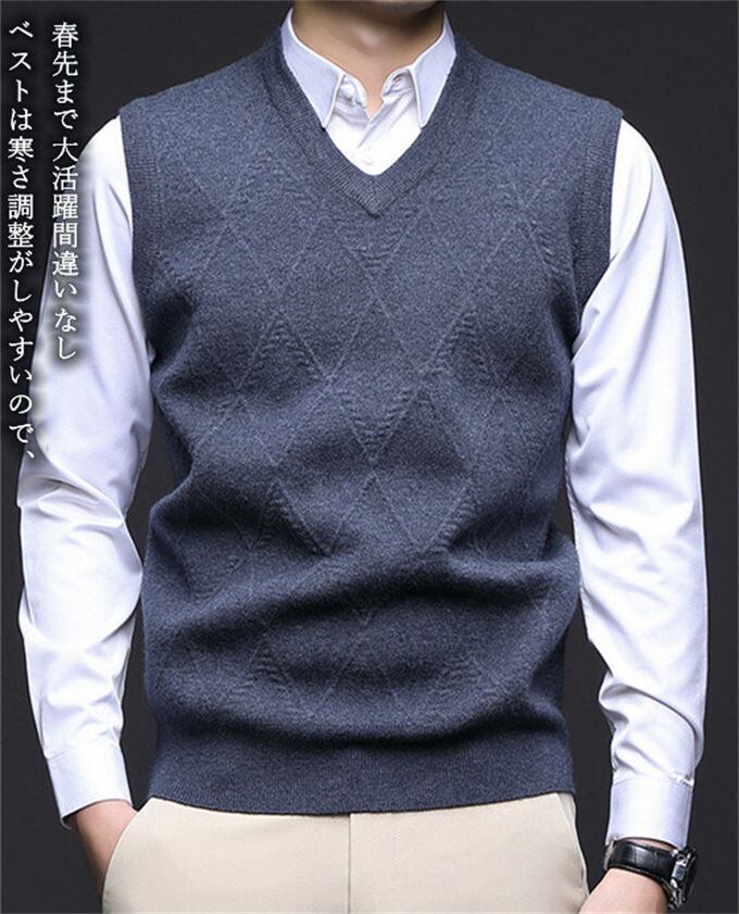 ニットベスト メンズ Vネック ベスト プルオーバー ニット ノースリーブ セーター ウォッシャブル ビジネス カジュアル 洗える 通勤 ジレ 厚手 防寒 暖かい 重ね着 仕事 ゴルフ 秋冬 おしゃれ 定番 紳士用 男性 服 おしゃれ プレゼント 送料無料