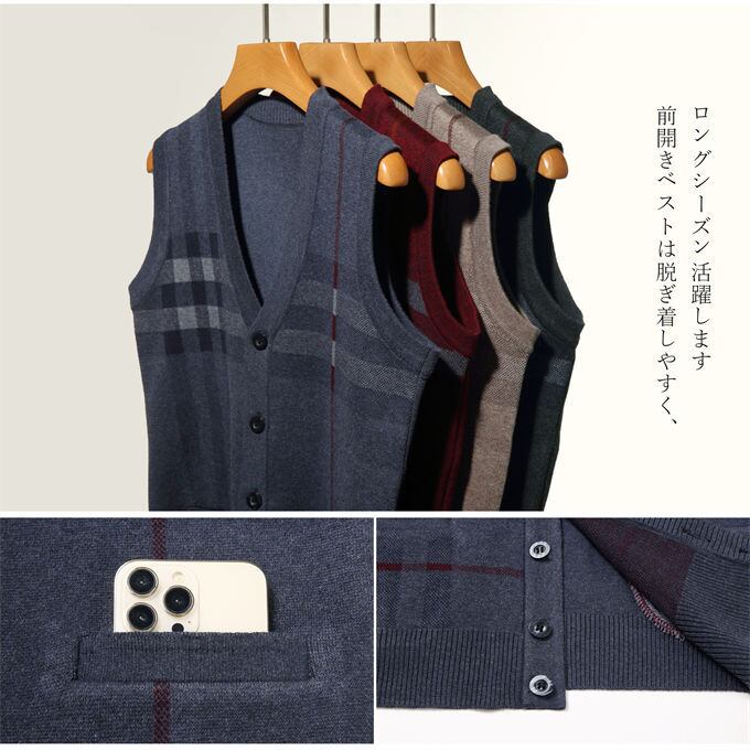 ニットベスト メンズ 前開き Vネック ビジネス ボタンフロント カジュアル セーター Vネックカーディガン 春 秋 冬 防寒 チョッキ ニット トップス 大きいサイズ 仕事 フォーマル 洗える 通勤 ジレ ゴルフ 男性 紳士服 秋冬 服 おしゃれ プレゼント 送料無料