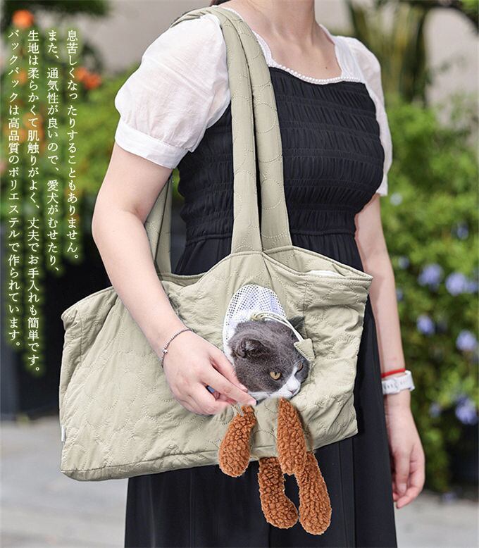 ペット キャリーバッグ 小中型犬と猫用 ペットキャリア ペットトートバッグ ショルダー 子犬用スリングキャリア 猫用キャリーバッグ 2way お出かけ 防災 避難 散歩 病院 大容量 軽量 飛び出し防止リード ペット携帯袋 防水板付き 滑り止め