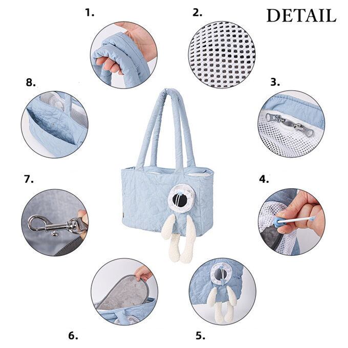 【使い分け】犬用キャリアのデザインは、状況に応じて上部をフルネット、ハーフオープン、フルオープンにすることができ、飼い主とペットが安全かつ快適に歩けるようになっています。パブリックエリアでは、上部シャッターカバーでシャッターを隠すことができます。愛犬が飛び出すのを防ぐ防御用の手がかりを持つだけでなく、雨の日の外出時に内部に水が染み込まないよう、バッグの内側には防水加工が施されています。