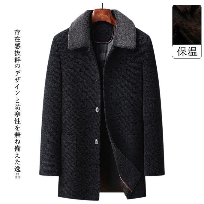 チェスターコート ロングコート メンズ ファー襟付き 裏起毛 厚手 ジャケット シングル アウター 厚手 防寒着 保温 あったか 暖か 紳士 ビジネス カジュアル 通勤 通学 シンプル オフィス 無地 シンプル プレゼント 30代 40代 50代 秋物 冬物 送料無料