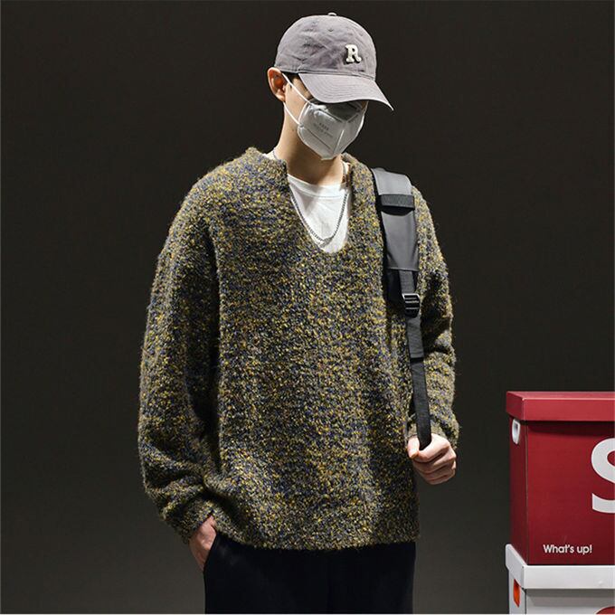 ニット メンズ ニット セーター Vネック ゆるニット プルオーバー トップス レイヤード シンプル 無地 ゆったり オーバーサイズ ビッグニット ビッグシルエット カジュアル ヴィンテージ風 韓国ファッション 秋 冬 秋服 冬服 送料無料