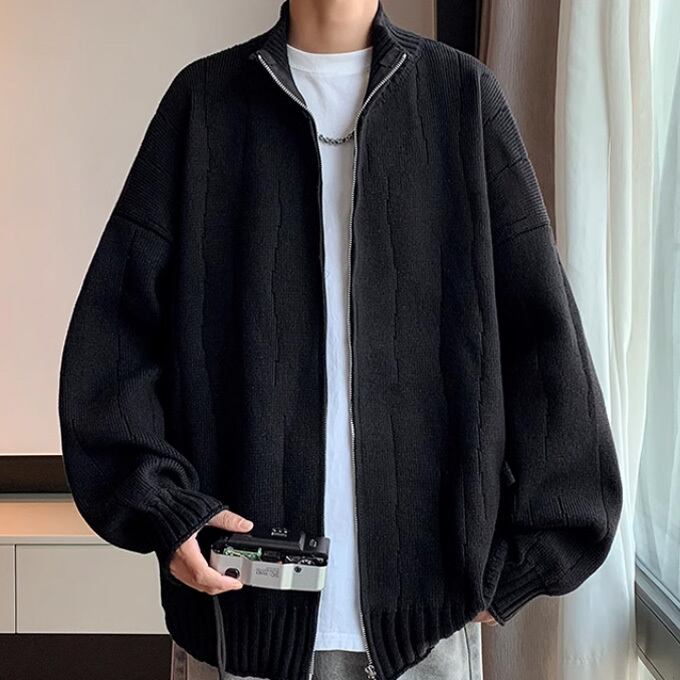 カーディガン メンズ 長袖 ニットカーディガン セーター ジップ スタンドカラー 暖かい しっかり生地 伸縮性 大きいサイズ トップス カジュアル アウター 秋 冬 カーデ 男性 服 ゆったり ファッション トップス 送料無料