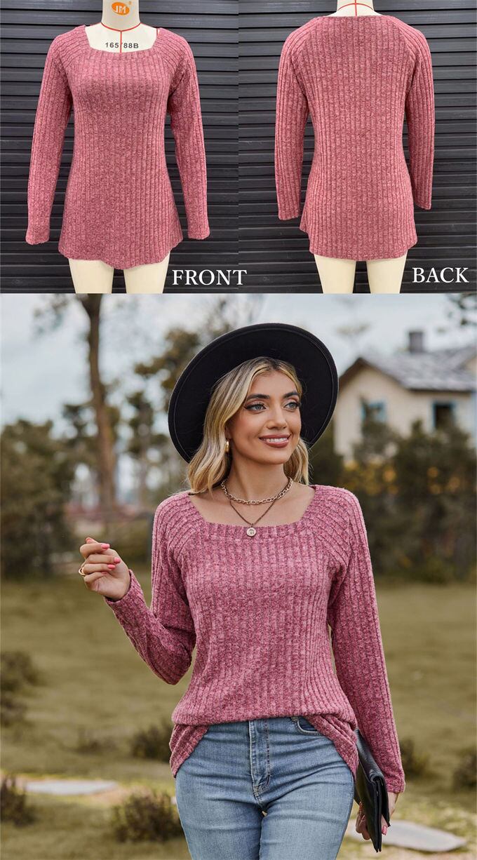 長袖 Tシャツ レディース カットソー スクエアカラー トレンド テレコリブ ロンT シンプル 無地 きれいめ かわいい 大きいサイズ オフィス カジュアル トップス 春 秋 冬 通勤 仕事 インナー ロングtシャツ ロンt 暖かい 韓国ファッション 送料無料