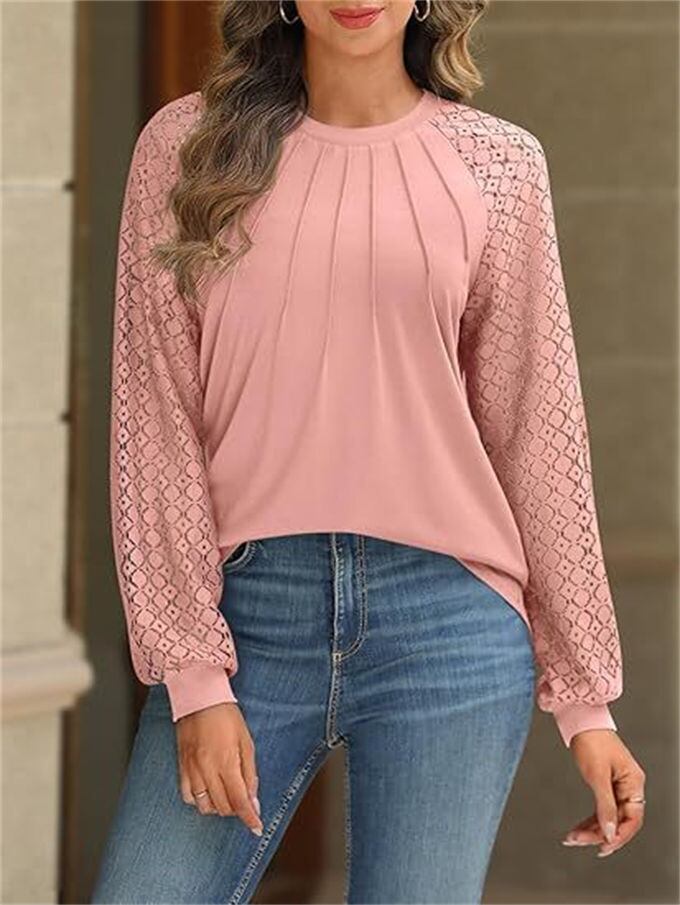 袖レース 刺繍 カットソー シャツブラウス 長袖ブラウス カットソー 大人可愛い レトロ 森ガール ブラウス シャツ シースルー 袖 クルーネック 透け 透け感 上品 カジュアル おしゃれ かわいい 韓国ファッション 春物 秋物 送料無料