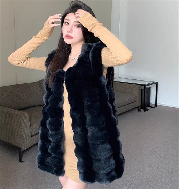 ファーベスト ウサギの毛皮 レディース 毛皮ベスト ミドル丈 フェイクファー ファーコート 毛皮コート エコファー 高級 上着 着痩せ おしゃれ 暖かい 防寒 きれいめ ボリューム カジュアル ゆったり 可愛い アウター 冬服 秋服 秋冬 送料無料