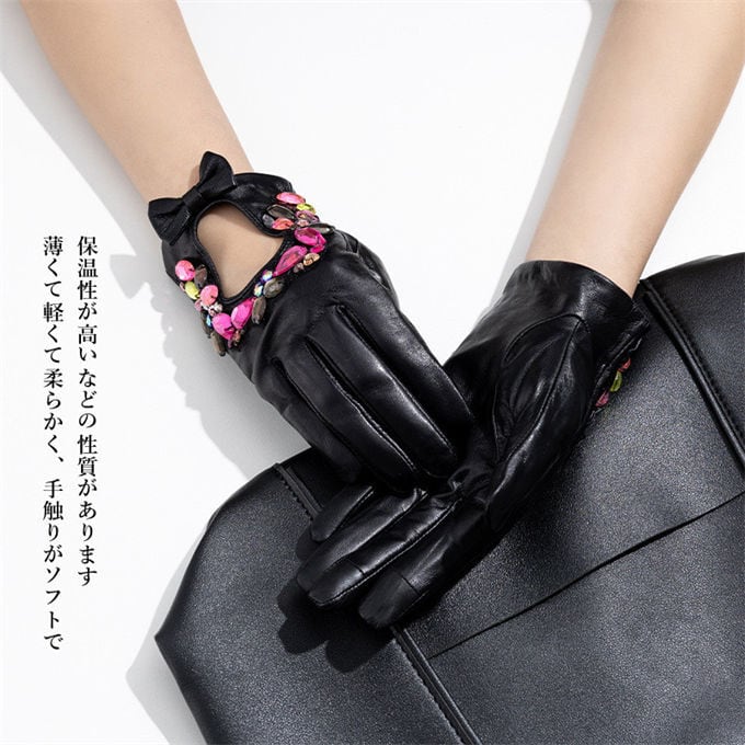 【2024年新作】革手袋 レディース レザーグローブ 本革 ラムレザー 飾り スマホ対応 タッチパネル対応 暖かい グローブ かわいい レザー手袋 女性用 彼女 スマホ手袋 レディース手袋 ギフト プレゼント おしゃれ 秋冬 送料無料