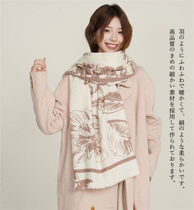 マフラー レディース 大判ストール ボリューム カシミヤタッチ 柄 ふわもこ ネックウォーマー ショール 巻き物 羽織 ひざ掛け 通勤 厚手 ロング 防寒対策 冬 暖かい おしゃれ 送料無料