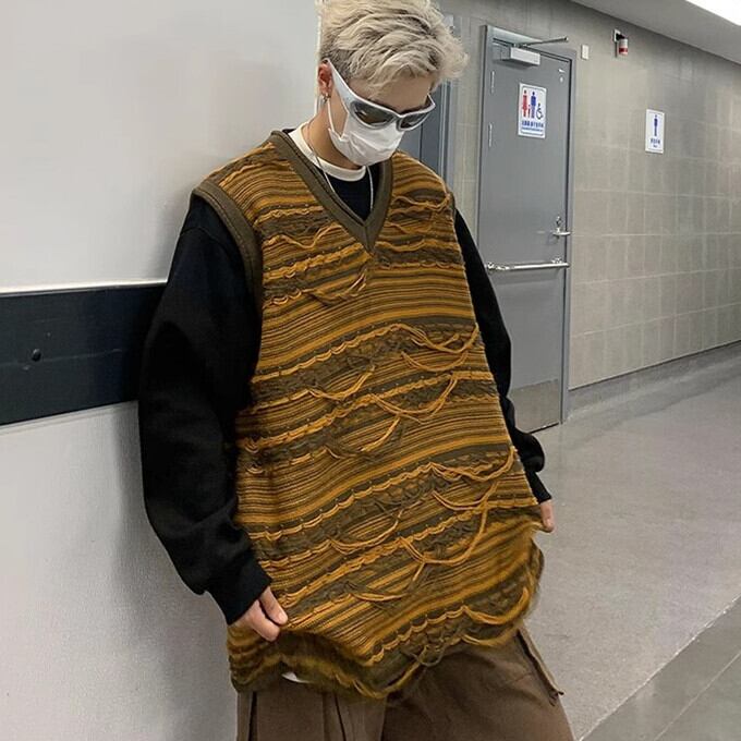 ■関連キーワード:ニットベスト メンズ ニット セーター ノースリーブ 袖無し そでなし 袖なし メンズニット ニットソー カットソー トップス Vネック ショート丈 フリンジ ボーダー ゆったり ビッグシルエット 体型カバー 大きいサイズ かっこいい カッコイイ プルオーバー オシャレ おしゃれ お洒落 しっかり生地 通勤 通学 カジュアル ストリート ストリート系 韓国系 韓国ファッション トレンド 厚手 防寒 暖かい あったか 保温性 春 秋 冬 秋 秋服 秋冬 冬 冬服 男性 男 20代 30代 40代 メンズファッション 誕生日 記念日 贈り物 ギフト 送料無料